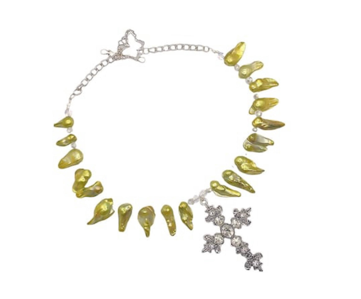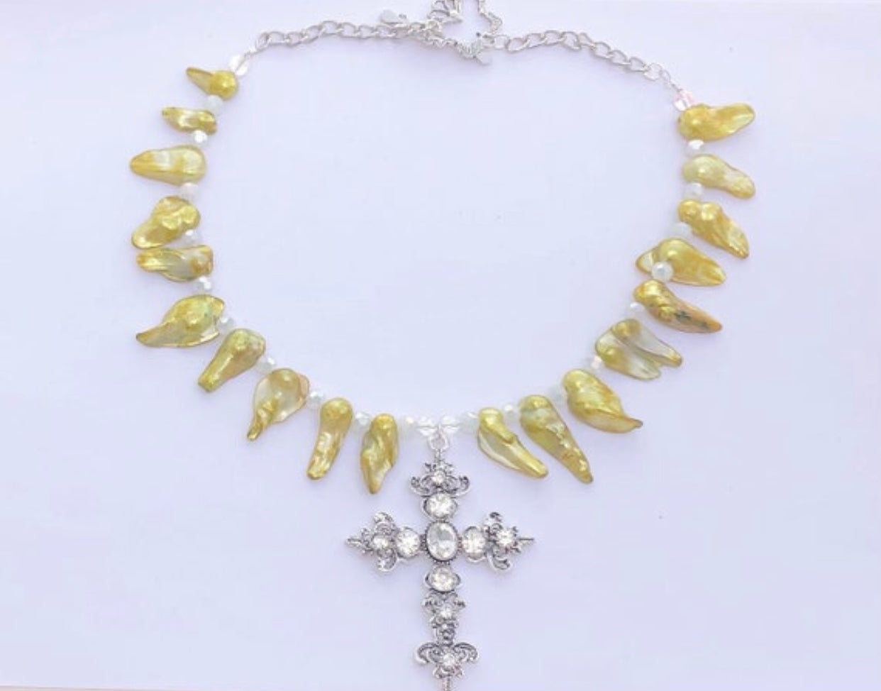 freshwater pearls and rhinestone sterling silver cross pendant