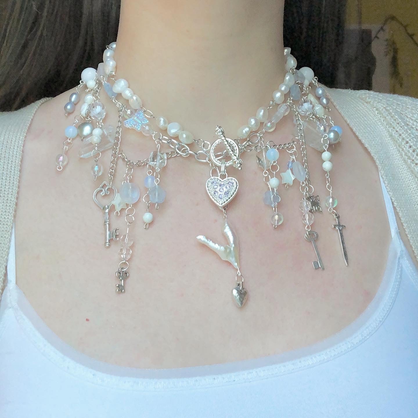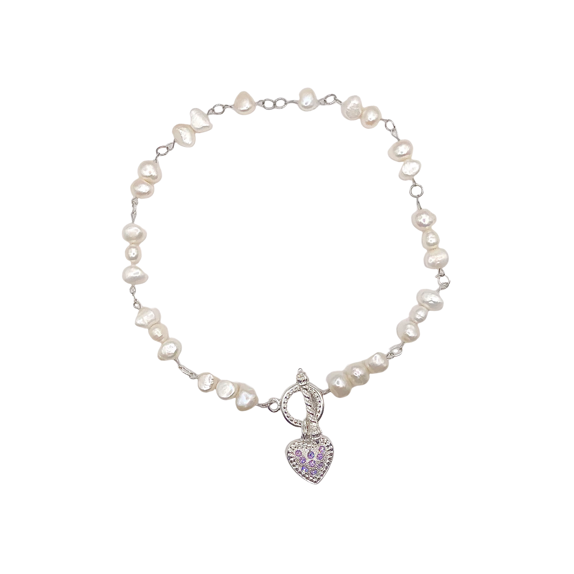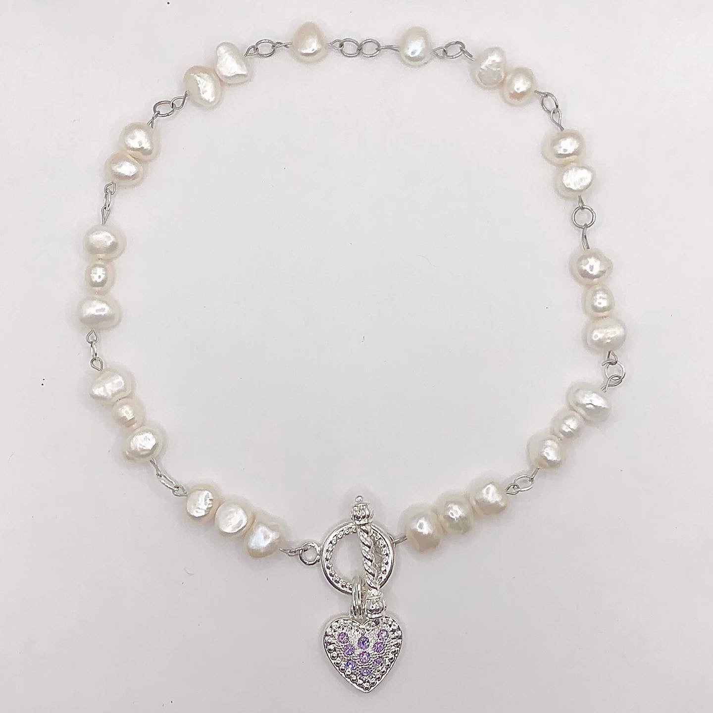 grade AA freshwater pearls and rhinestone heart toggle clasp