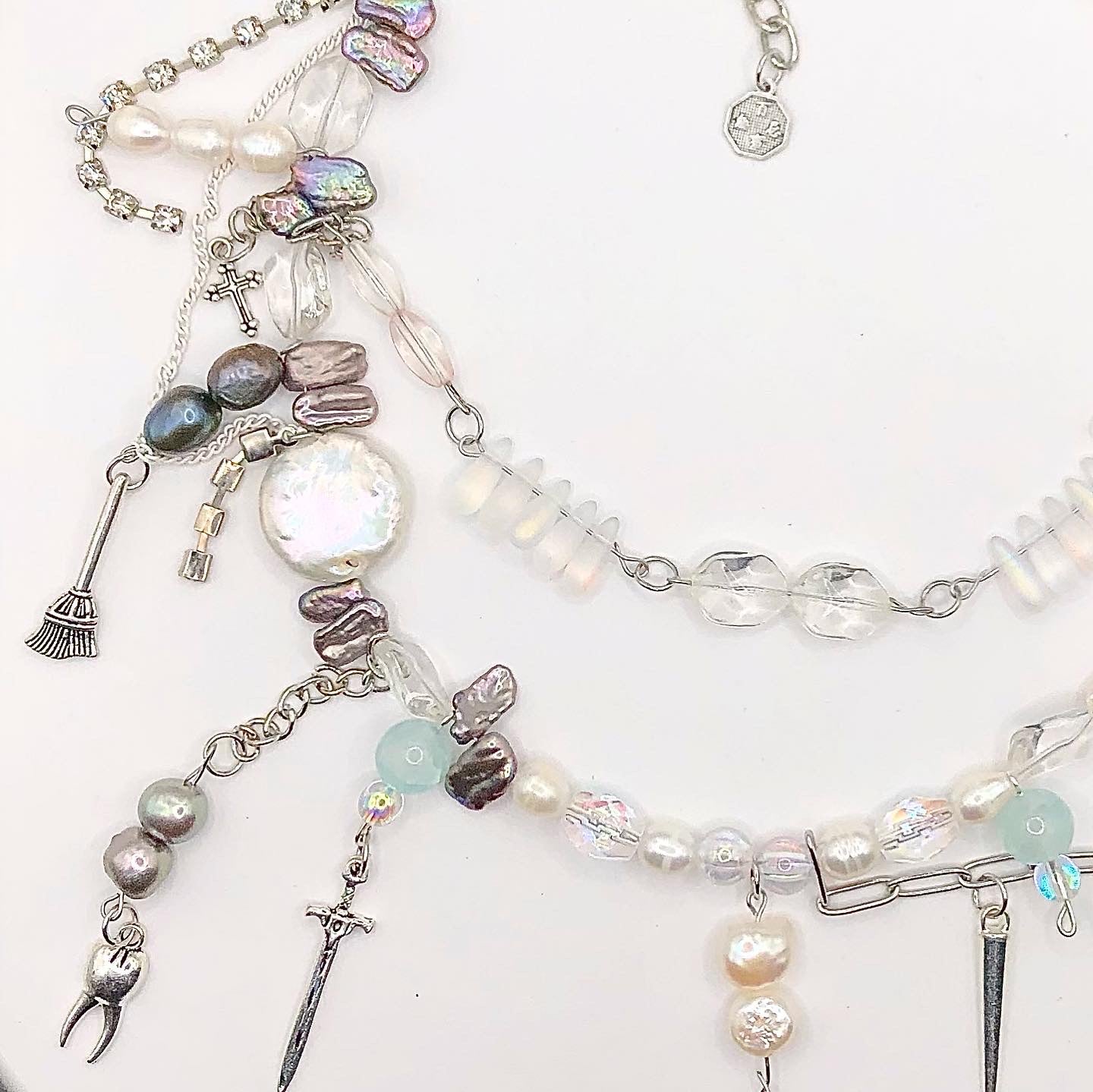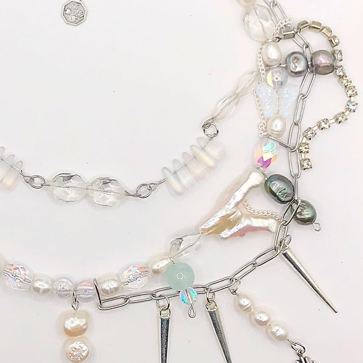 czech glass, crystal, AB glass, freshwater pearls, up-cycled rhinestone